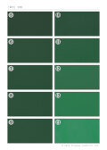 新岩絵具は、珪酸化合物に発色剤として金属化合物を混合し、800~1000℃で焼成して人造珪岩石を作ります。これを天然岩絵具と同様に粉砕し、粒度別に水簸分級した絵具です 。