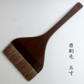 TOP筆・刷毛 刷毛 唐刷毛(5寸) 清晨堂製 価格: ¥37,400 (税込) [ポイント還元 374ポイント~] 販売期間: 数量: 枚 在庫 在庫あり 返品についての詳細はこちら ぼかし表現に使います この商品について 鹿の背筋の硬く荒い腰のきいた毛を使用した総漆仕上げの刷毛です。 絹や広い面の地塗りのぼかし、またバックのぼかし、絵具のむらを取るときなど様々な用途があります。 刷毛の中でも唐刷毛は、唯一水に濡らさず使う特殊な刷毛です。 画面上の絵具が乾かないうちに、唐刷毛を使ってすばやくぼかす…というのが唐刷毛の最も特徴的な技法で、 この技法は、明治の終わり頃横山大観や菱田春草といった画家たちによって提唱された 「朦朧体」(線を用いず、色彩で表現する画法)を生み出したと言われています。 商品情報 寸法 穂幅:約14.5cm 穂の長さ:約4.6cm